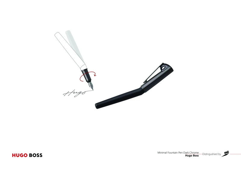 The redesign of the Hugoboss fountain pen, inspired by the sharp angles of the “Vasvaseh” typography and the use of hollow spaces within the letter “و” creatively combines form and function.